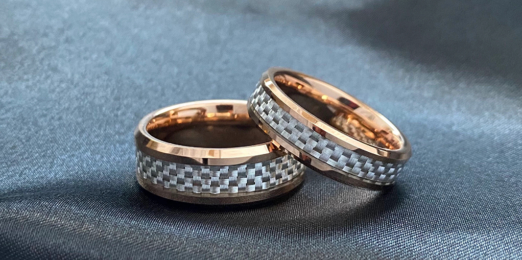 Rose gold wedding rings are known for their warm metallic sheen, exuding a romantic feel that’s perfect for couples who want something refined and delicate. Carbon fiber rings, on the other hand, are extremely strong, lightweight, and durable, and they have a futuristic, edgy look. These rings are especially favored by couples seeking a unique and bold statement.